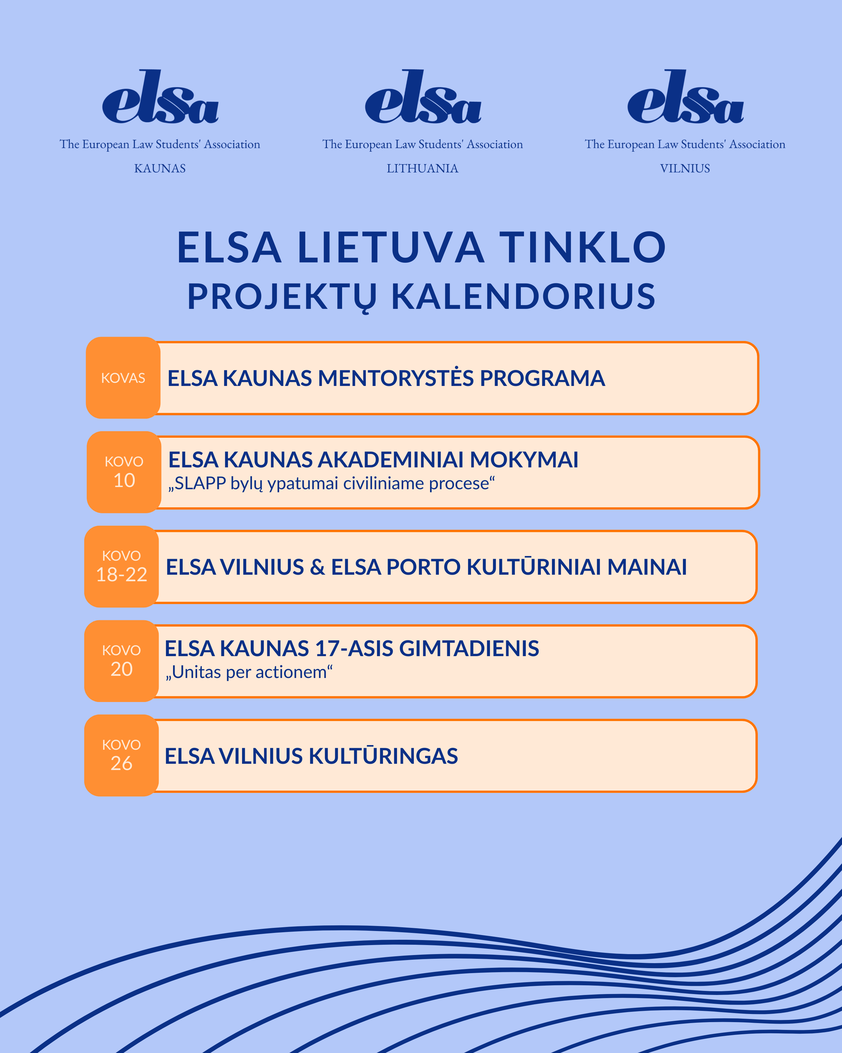 Skelbiame ELSA Lietuva tinklo kovo mėnesio projektų kalendorių!