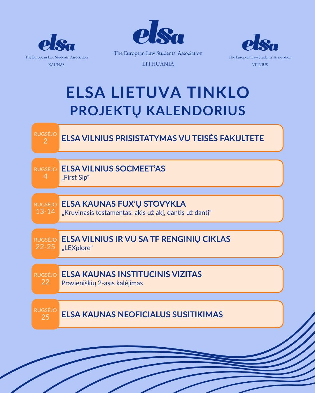 Skelbiame ELSA Lietuva tinklo rugsėjo mėnesio projektų kalendorių!