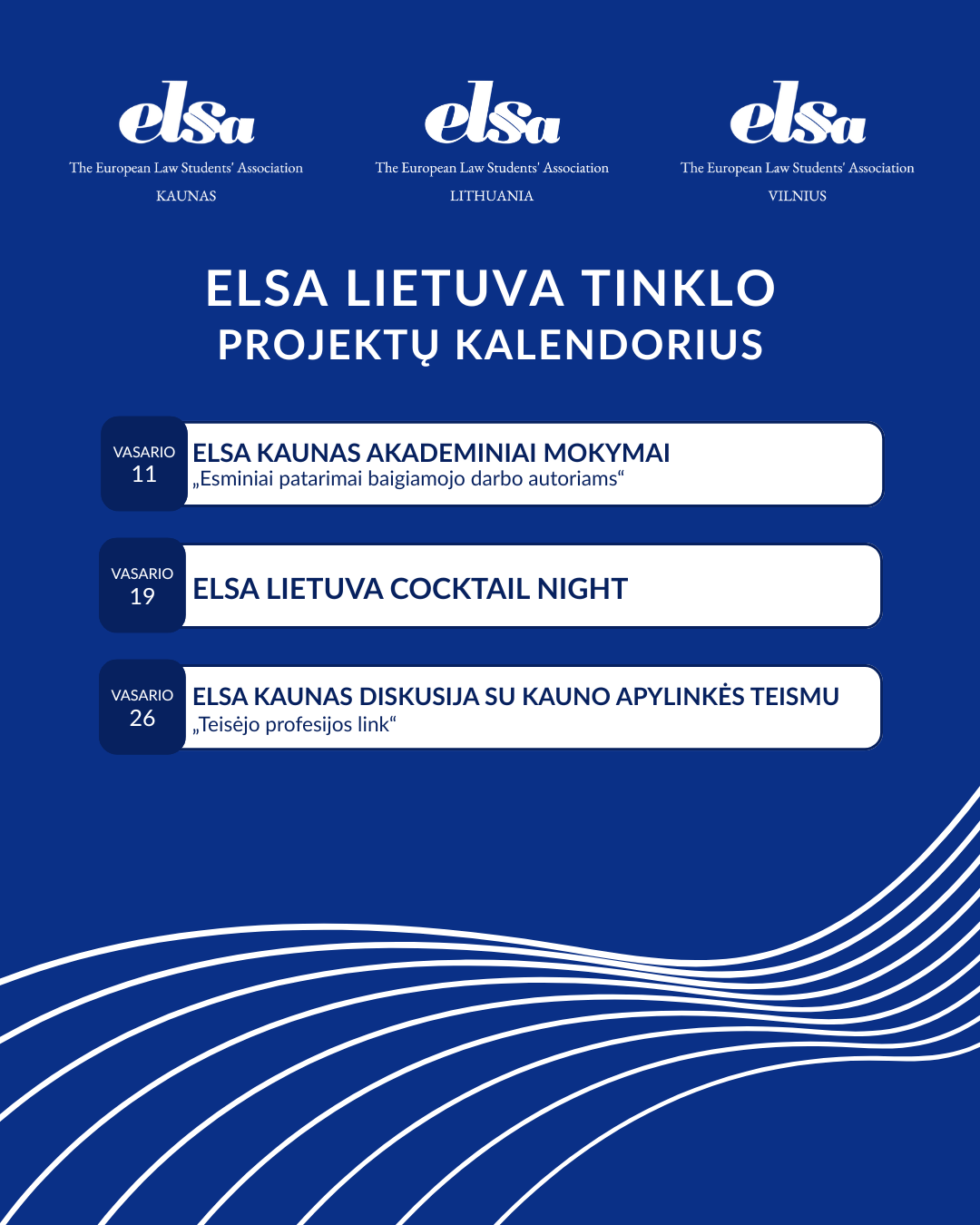 Skelbiame ELSA Lietuva tinklo vasario mėnesio projektų kalendorių!